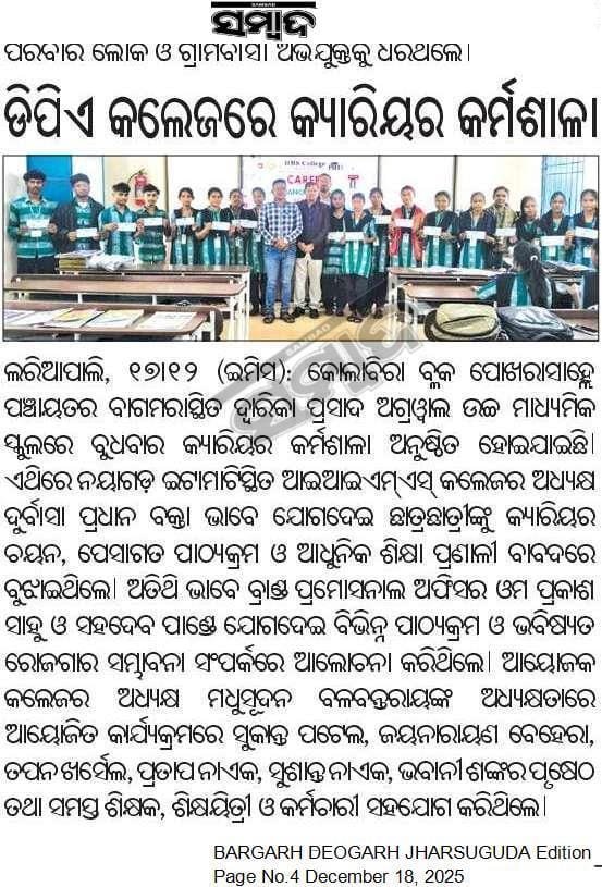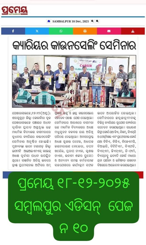 Nov-10, 2025 ଦିନ ଆଇ.ଆଇ.ଏମ୍.ଏସ୍. କଲେଜ, ଇଟାମାଟି, ନୟାଗଡ଼ ର ସ୍ନାତକ (Bachelor of Social Work-BSW) ର ଛାତ୍ର/ଛାତ୍ରୀମାନେ ସାମାଜିକ ସୁରକ୍ଷା ଓ ଭିନ୍ନକ୍ଷମ ଶଶକ୍ତିକରଣ ବିଭାଗ, ଭାରତ ସରକାର ଦ୍ବାରା ପରିଚାଳିତ ସେବା, ବୌଦ୍ଧିକ ଭିନ୍ନକ୍ଷମ ଶିଶୁମାନଙ୍କ ସ୍ବତନ୍ତ୍ର ବିଦ୍ୟାଳୟ, ନୟାଗଡ଼କୁ କ୍ଷେତ୍ର ପରିଦର୍ଶନରେ ଯାଇଥିଲେ । ଏଥିରେ ସେବା ବିଦ୍ୟାଳୟର ଅଧ୍ୟକ୍ଷ ଶ୍ରୀ ବୈକୁଣ୍ଠ ନାଥ ମହାପାତ୍ର ଏବଂ ତାଙ୍କର ଶିକ୍ଷକ ଓ ସହକର୍ମୀ ଗଣ ଆଇ.ଆଇ.ଏମ୍.ଏସ୍. କଲେଜର ଛାତ୍ରୀ/ଛାତ୍ରୀଙ୍କୁ ଭିନ୍ନ କ୍ଷମ ପିଲାମାନଙ୍କର ଅସୁବିଧା ଏବଂ ଧର୍ଯ୍ୟର ସହିତ ତାଙ୍କୁ ବୁଝିକି ଦେଖାଶୁଣା କରିବାର ତାଲିମ ପ୍ରଦାନ କରିଥିଲେ । ଏହି ପରି ଶୈକ୍ଷିକ ଗସ୍ତ ଆମ୍ଭମାନଙ୍କର ଭାବାତ୍ମକ ବିଚକ୍ଷଣତାକୁ ବଢାଇଛି ବୋଲି ଛାତ୍ର ଛାତ୍ରୀମାନେ ମତ ପ୍ରକାଶ କରି ସେବା ସଂସ୍ଥା, ନୟାଗଡକୁ କୄତଜ୍ଞତା ଜ୍ଞାପନ କଲେ । ଆଇ.ଆଇ.ଏମ୍.ଏସ୍. କଲେଜ ତରଫରୁ ଭିନ୍ନକ୍ଷମ ପିଲାମାନଙ୍କୁ ଖାଦ୍ୟ ବଣ୍ଟନ କରିବା ସହ ଆର୍ଥିକ ରାଶି ସହଯୋଗ କରାଯିବ ବୋଲି ସଭାପତି sunjeet ରୋଷନ୍ ପଟ୍ଟନାୟକ ଓ ସମ୍ପାଦକ ଶିଶିର କୁମାର ପଟ୍ଟନାୟକ ମହୋଦୟ ଆଶ୍ଵାସନା ଦେଇଛନ୍ତି।